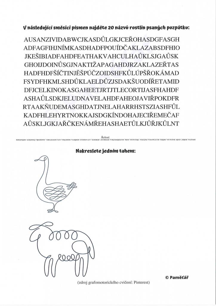 4.B. Ve spodní části tohoto listu najdete husu a ovečku, které jsou nakresleny jedním tahem - podaří se to i Vám? Můžete procvičit i svou nedominantní ruku (praváci levou, leváci pravou)